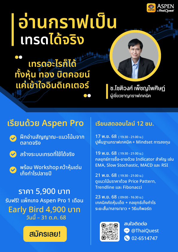 23 พ.ย. 68 → Workshop เต็มวัน “คัดหุ้นเด่น – แก้พอร์ต – วางแผนเทรดจริง”