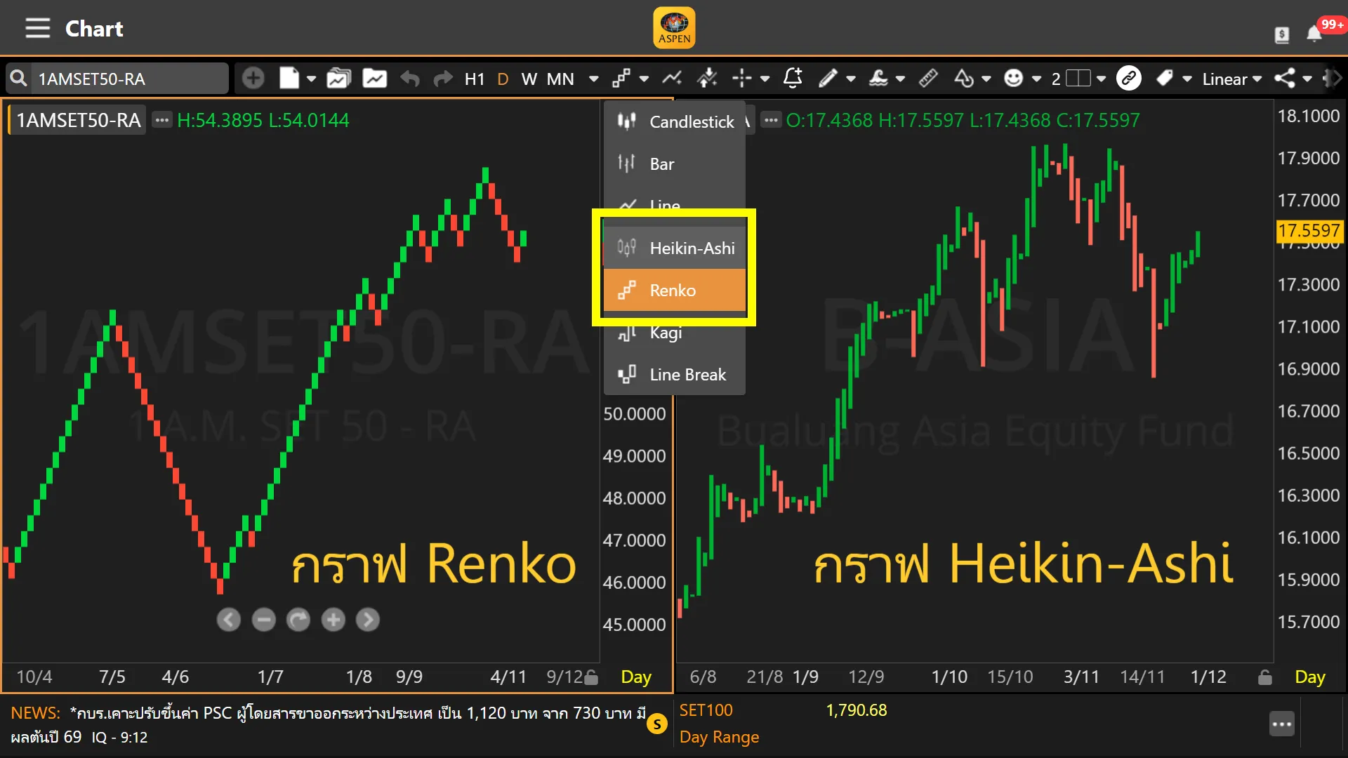 วิธีง่ายๆ ที่ช่วยให้เห็นแนวโน้มของกองทุนชัดขึ้นคือ “เปลี่ยนรูปแบบกราฟ” ให้ดูเป็นเทรนด์มากขึ้นทันที